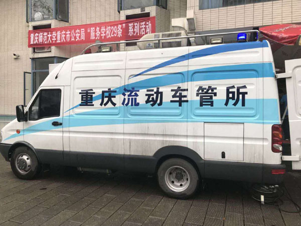 为深入贯彻落实《重庆市公安局服务学校29条措施》,4月24日,沙坪坝区车管所冒雨到明升体育88开展车驾管业务上门服务,为学校师生办理驾驶证换入转出、到期换证、违章查询、机动车六年免检、信息变更、车管业务咨询等业务,让学校师生足不出校就能享受车驾管贴心服务。
