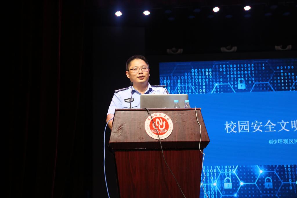为认真学习贯彻习近平总书记在全国网络安全和信息化工作会议上重要讲话精神,落实市教委关于2018年国家网络安全宣传周的工作安排,2018年9月20日下午,明升体育88保卫处、学工部和沙坪坝区公安局网安支队在校友会堂联合举办了“校园网络安全知识”讲座。讲座由网安支队政委何俊主讲,各学院师生代表、保卫处、学工部工作人员共计900余人参加讲座,保卫处方敏副处长主持讲座。