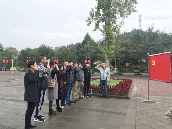 在杨闇公纪念馆前,党员同志们怀着崇敬之情瞻仰了杨闇公同志短暂而辉煌壮丽的一生,被他“人生如马掌铁,磨灭方休”的人生理想和宁死不屈的大无畏革命精神所深深震撼。在杨闇公同志的雕塑前,大家对着烈士塑像默默致哀,表达崇高敬意。深切缅怀先烈的丰功伟绩,弘扬先烈的崇高精神。随后全体党员面向党旗,举起右拳,重温入党誓词。铿锵有力的宣誓声在广场上响起,充分表达了为党和人民事业奋斗终身的初心和决心。大家纷纷表示,要以实际行动,谱写好新时代新篇章。
