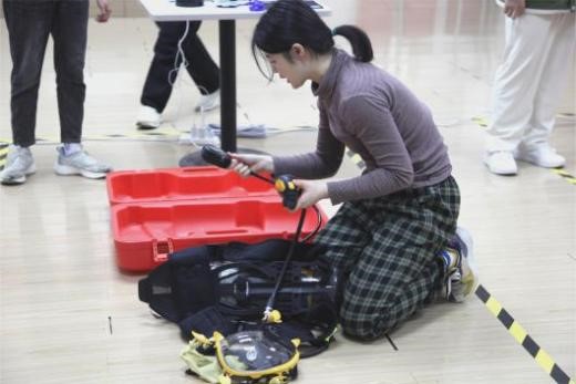 据悉,在大赛前期,保卫处(人民武装部)动员组织戎耀青春成长发展营同学利用课余时间对比赛项目进行学习,同时邀请大学城消防站、校医院等专业人士开展培训,以现场理论学习、实操演练、课下强化等形式,进行了充分的前期准备。比赛过程中大家严阵以待,认真处置,细扣微末,力求高效处置危机情境,确保应对及时,处置得当。本次培训以赛代学,旨在提升大学生应急处置能力,同时还设有应急救援装备展览环节,以“人人讲安全、个个会应急”为主题,向学生展示了防灾减灾、应急备灾、监测预警、应急响应、紧急救援、灾后安置和恢复重建等环节的软硬件设备,让新时代的大学生永远焕发青春与活力。