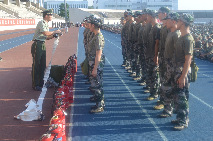 最后,组织新生实施消防应急疏散。当现场进入紧急突发情况时,各连队组织新生按顺序依次进行疏散,快速、规范、严肃、认真。