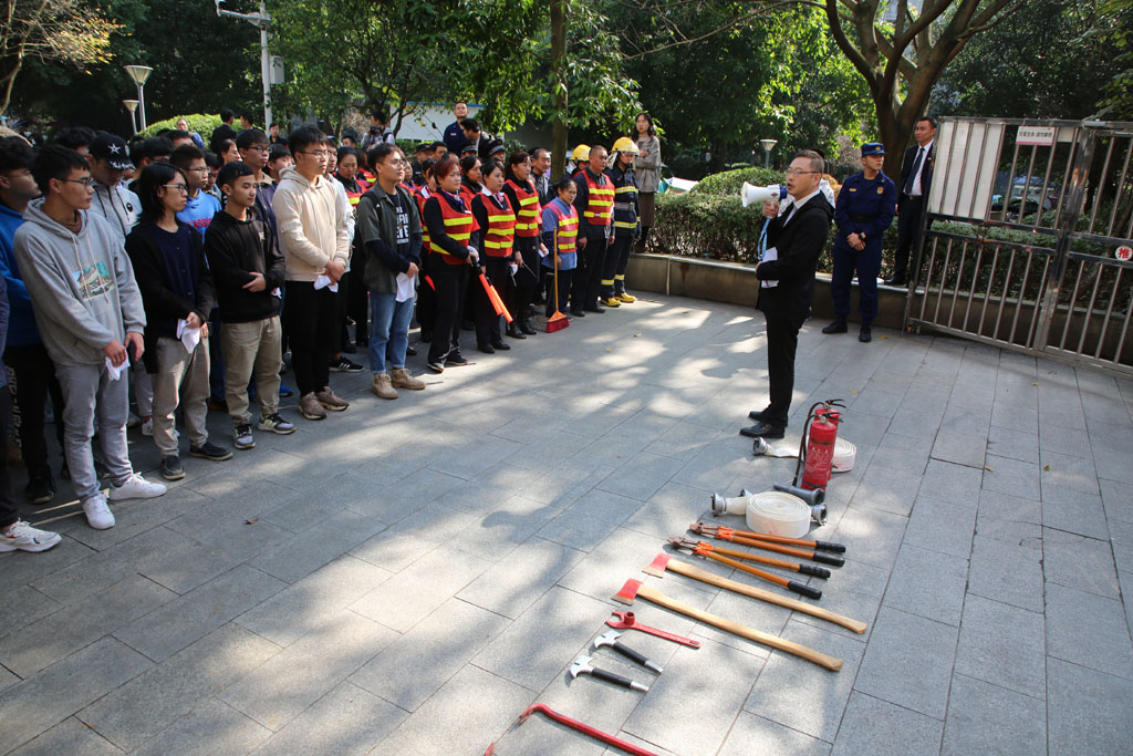11月14日下午1点半在清风苑A栋开展了消防疏散演练活动,本次疏散演练涉及清风苑A栋,包括物理与电子工程学院、地理与旅游学院、计算机与信息科学学院和化学学院部分宿舍。演练正式开始前,沙坪坝区消防支队大学城中队刘昌果队长就宿舍安全用电进行了讲解。随后,演练正式开始,火情发生,新大正物业立即按程序确认火情,启动应急预案,有序完成了报警处警、人员疏散、物资抢救、扑灭火险等,整个演练过程紧张而有序。