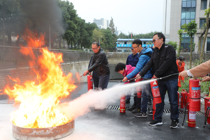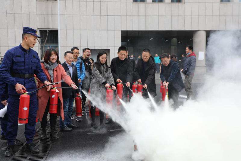 培训会结束后,全体参会人员移步至博雅楼后门进行灭火演练。在消防专员讲解灭火器使用方法后,参会人员进行了灭火演练。