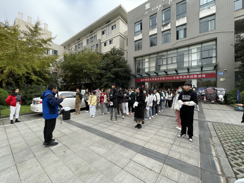 下午3点,消防疏散演练在m88集贤楼美术学院实验与实训中心进行,正式开始前,保卫处消防科科长张国建就本次消防应急疏散演练的注意事项、逃生方式及要点进行了仔细的讲解。